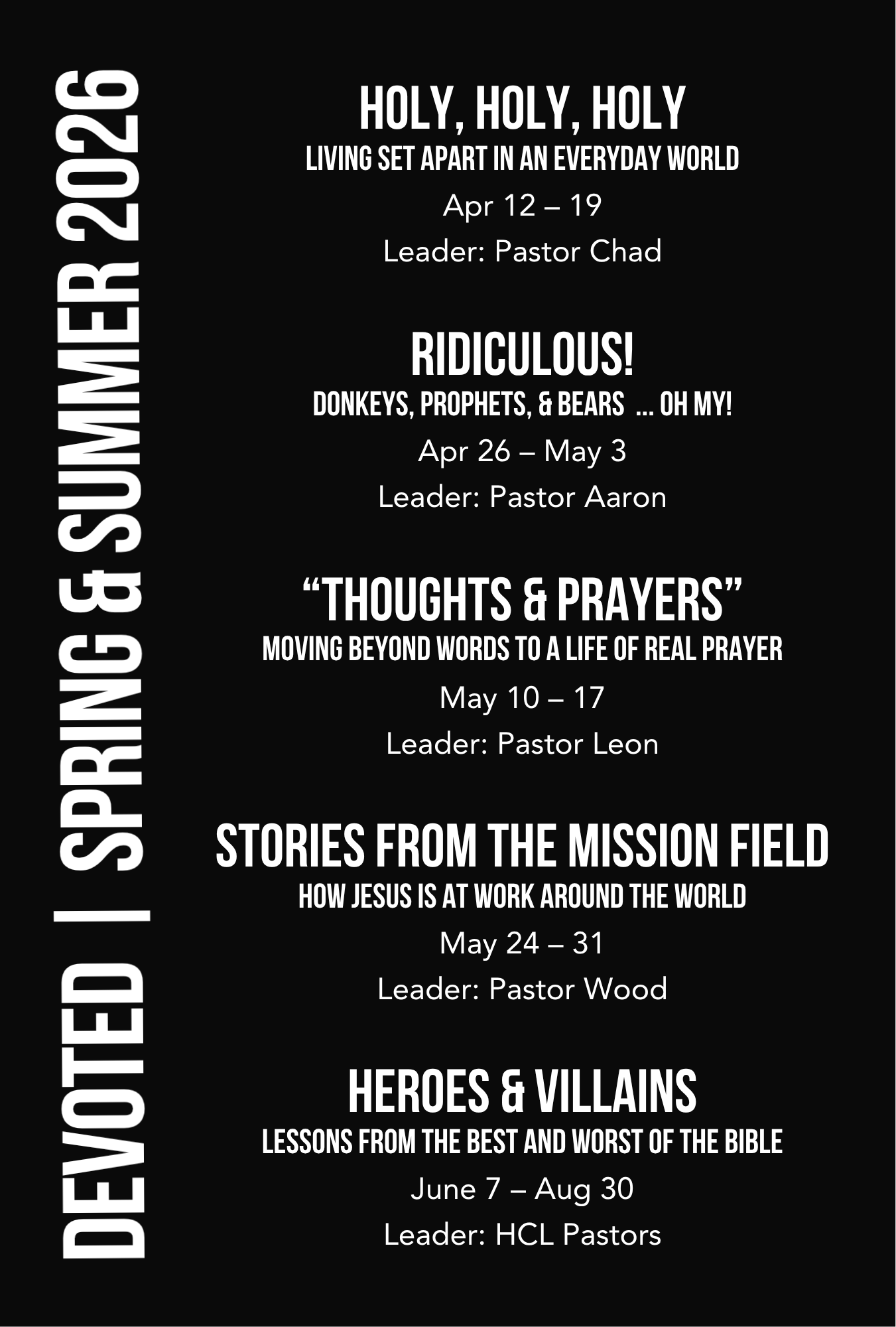 Together, we open our Bibles, ask questions, and share experiences. Together, we sing and pray. Together, we experience what God has in store for a community that has hearts wrapped around his Word. And above all, together, we grow in faith in Jesus, the one who died and rose for us—and continues to be completely DEVOTED to us.